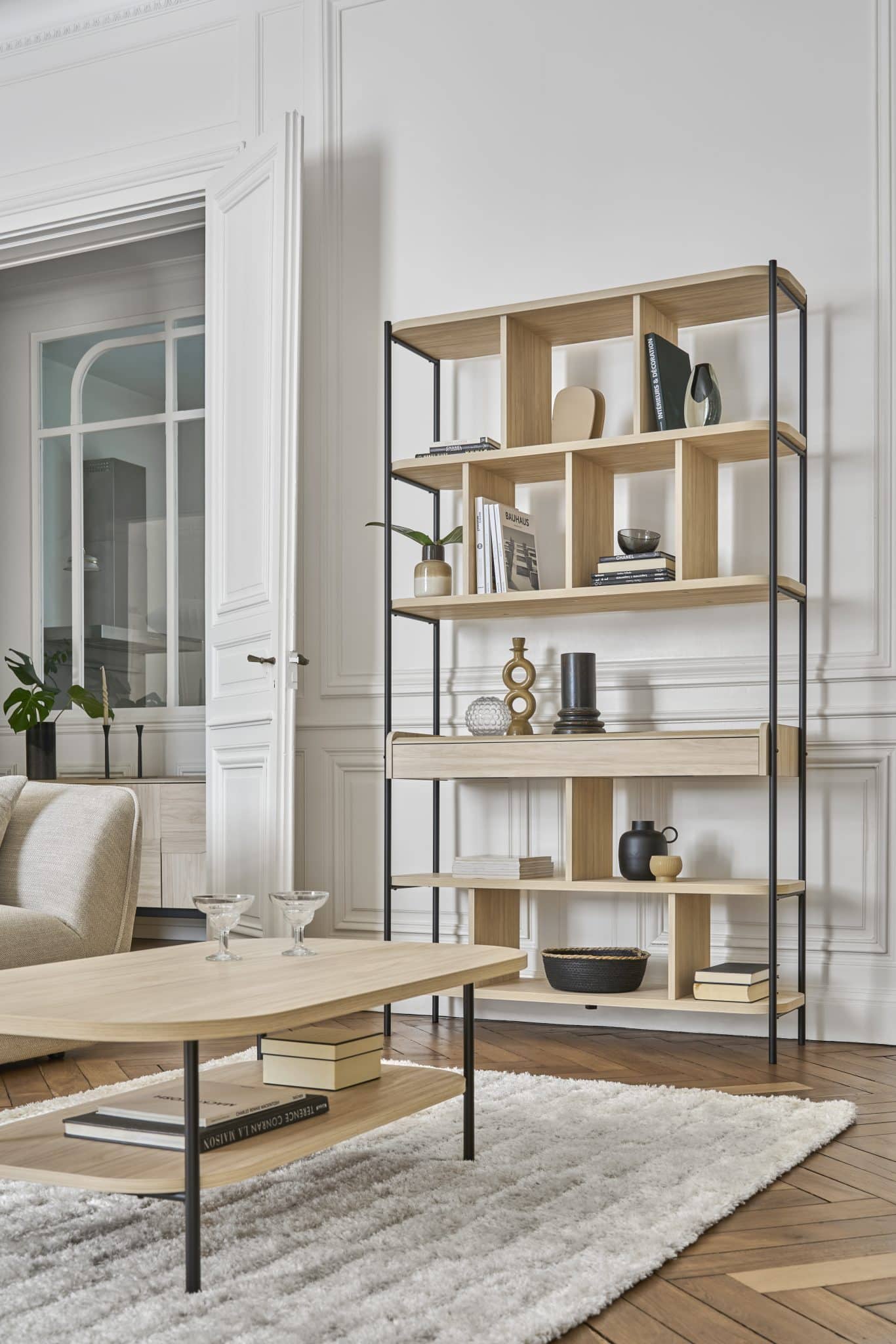 Découvrez la collection exclusive Mila CAMIF, une gamme de meubles design disponible uniquement sur le site internet CAMIF. Pensée pour le salon, la salle à manger et le bureau, chaque pièce combine le métal noir et le bois Hickory Frida, offrant un mélange parfait de modernité, inspiration rétro et chaleur naturelle.