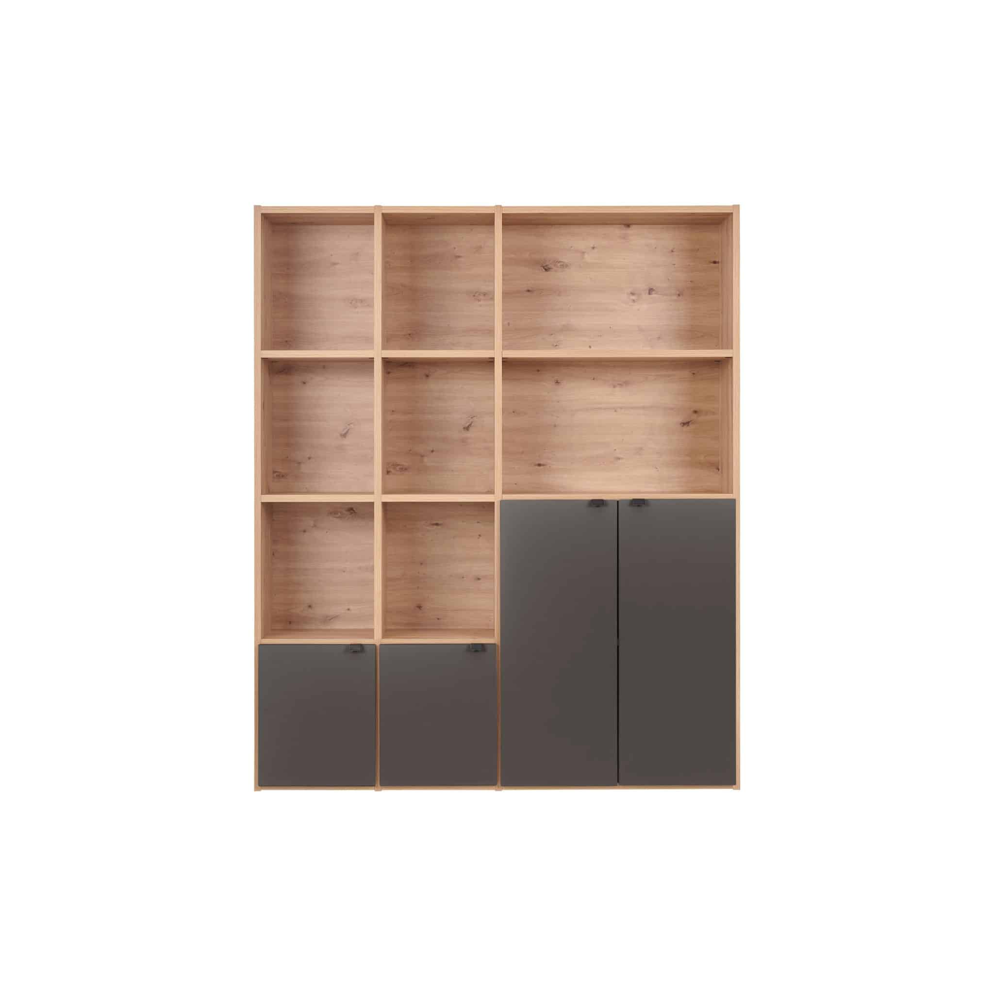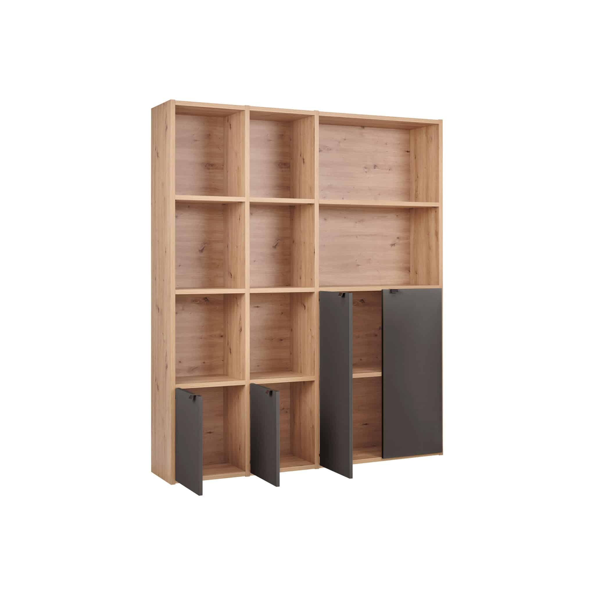 Dotée d’une finition décor bois chêne sauvage et de façades en coloris Carbone Gu, la bibliothèque Marlone apporte une ambiance chaleureuse et contemporaine à votre intérieur. Personnalisable lors du montage, elle vous permet de choisir l’emplacement des portes selon vos besoins et votre style.