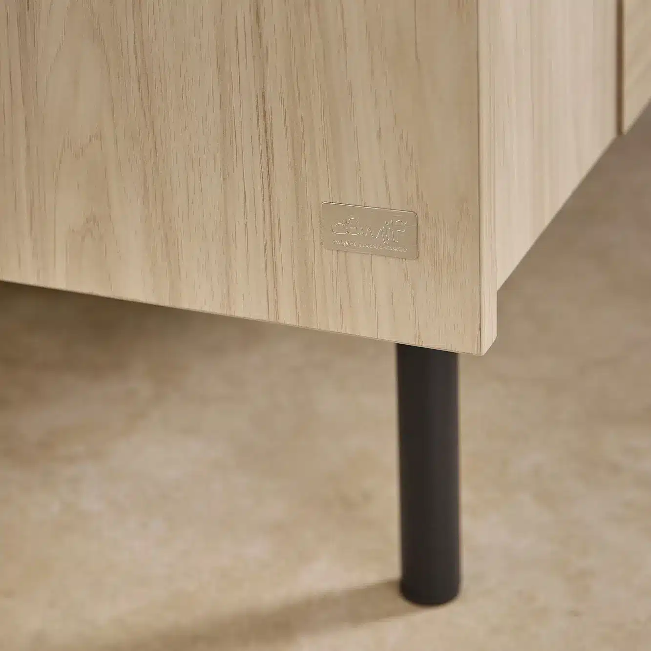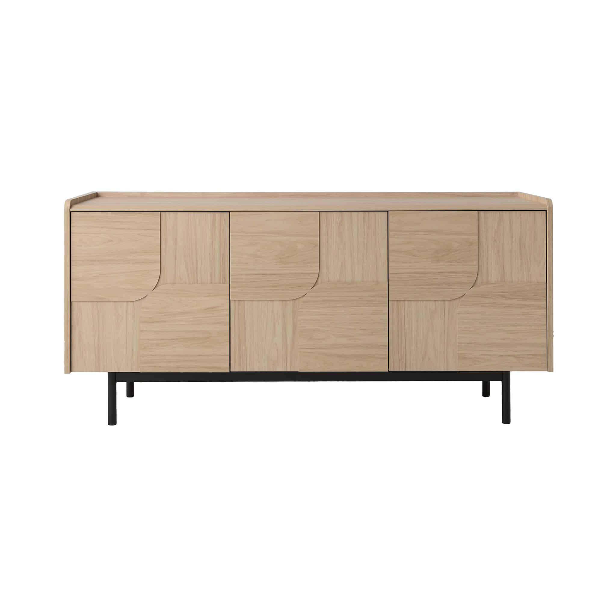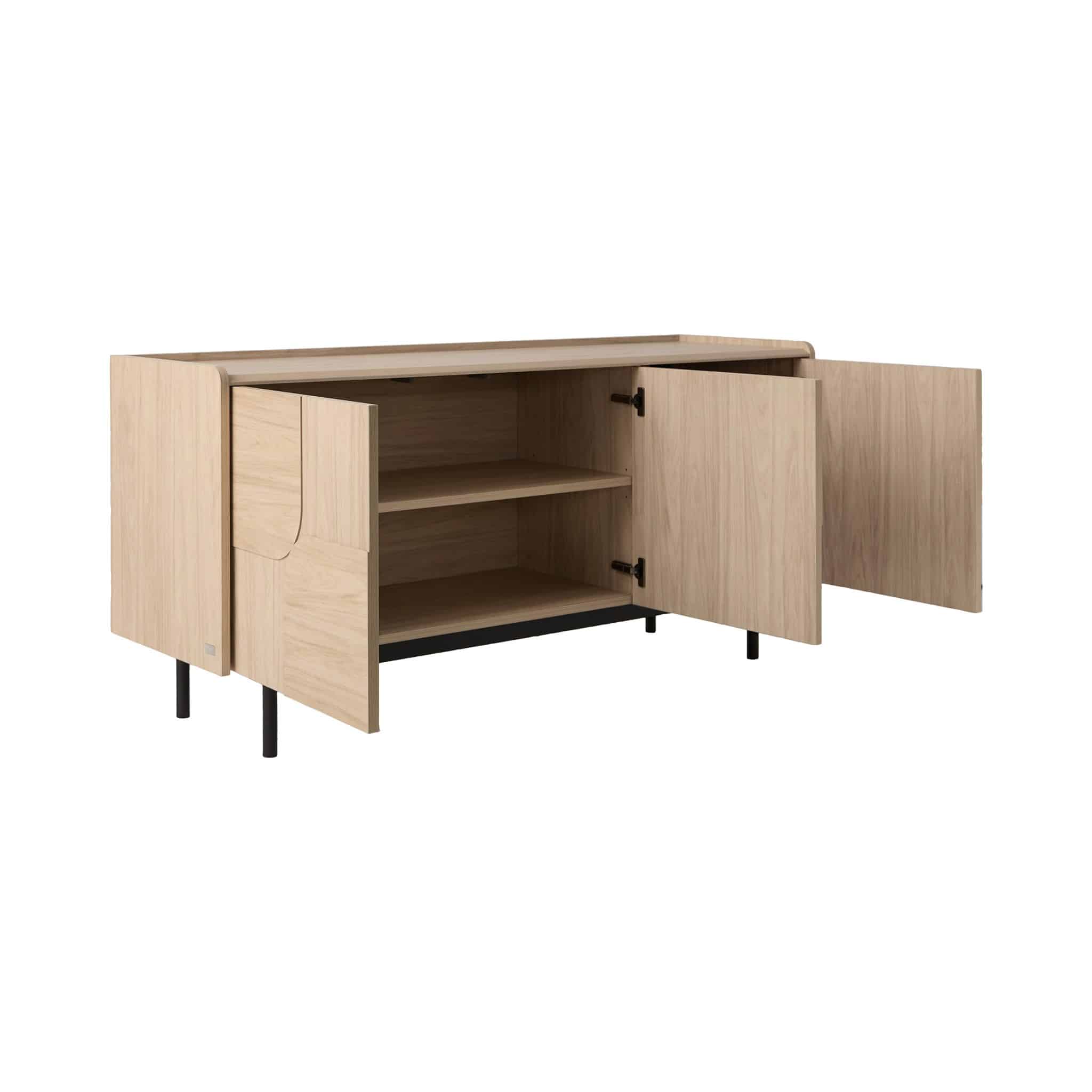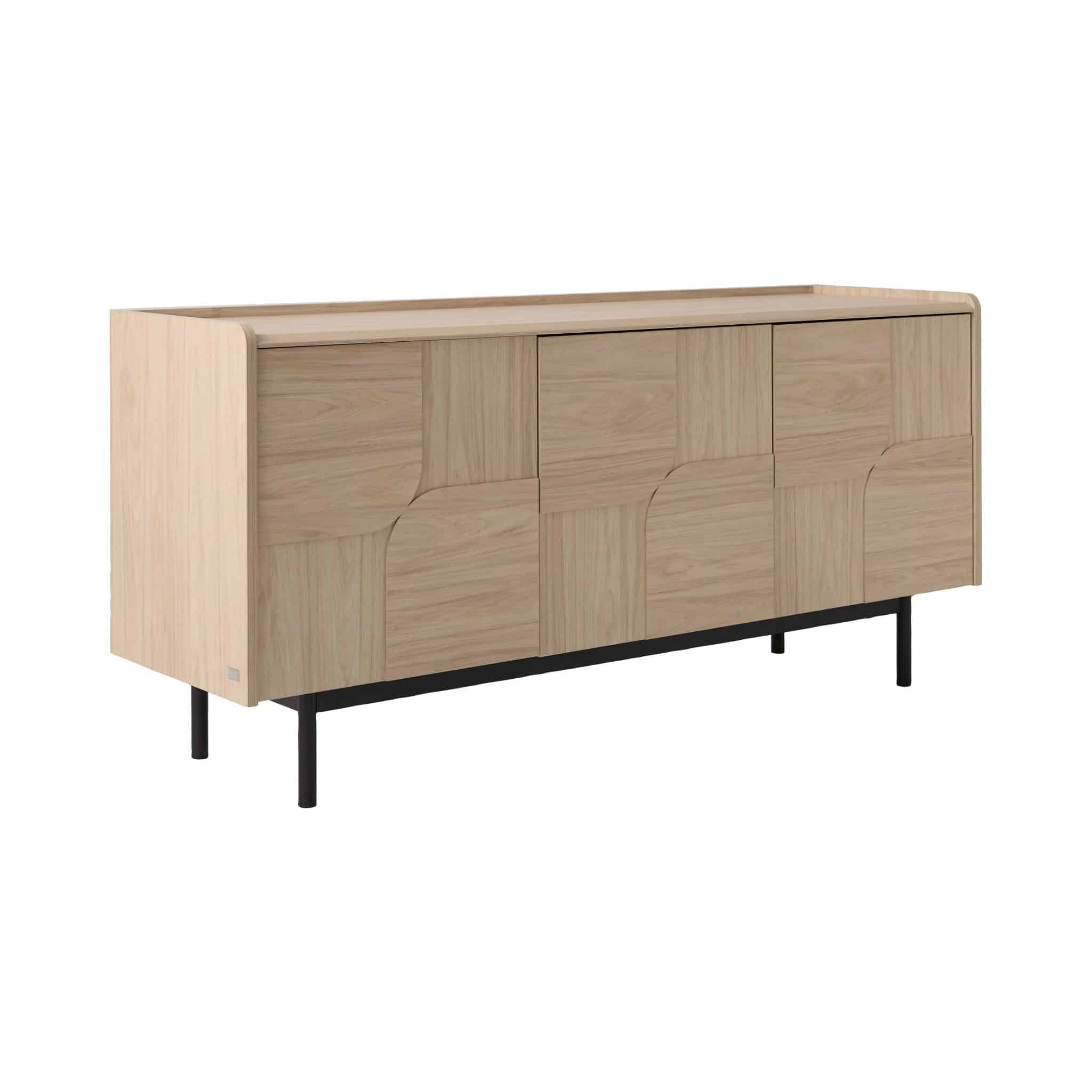Le mariage du métal noir et du décor chêne blanchi offre un contraste harmonieux entre influences rétro et modernes, pour une ambiance à la fois chaleureuse et tendance. Grâce à ses trois portes de rangement, le buffet Mila propose un vaste espace pour organiser votre vaisselle, vos papiers ou vos objets du quotidien, tout en conservant un intérieur épuré et ordonné.