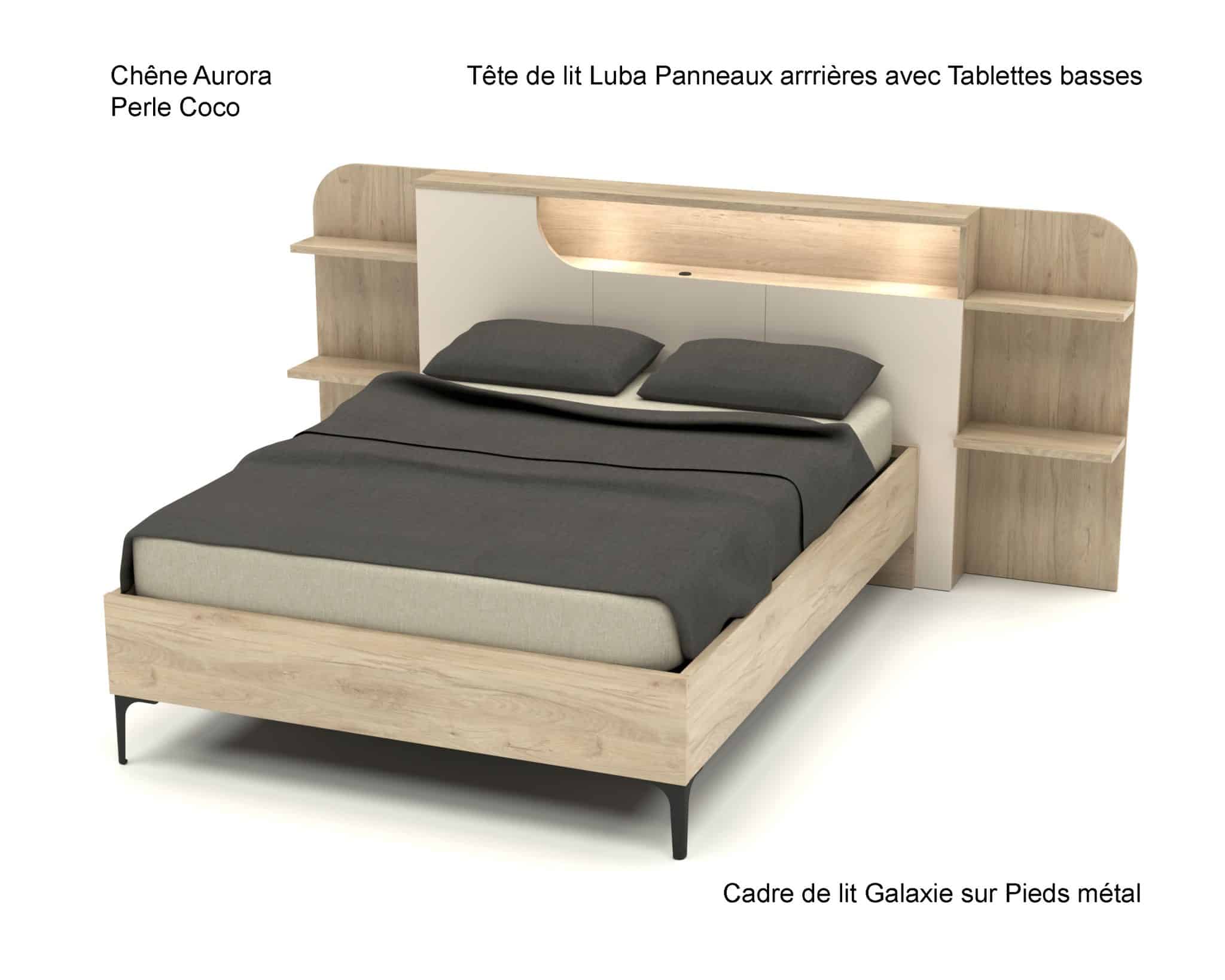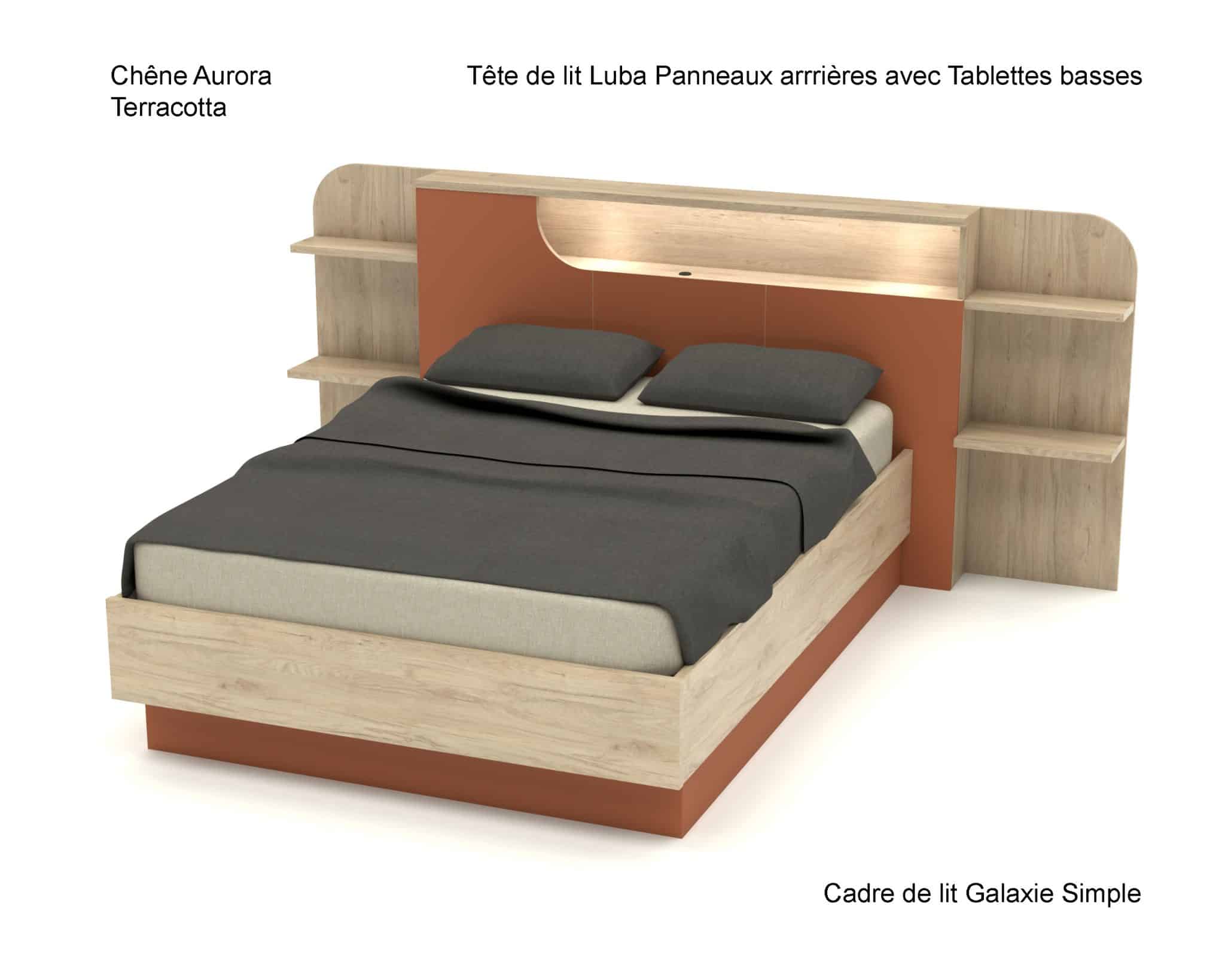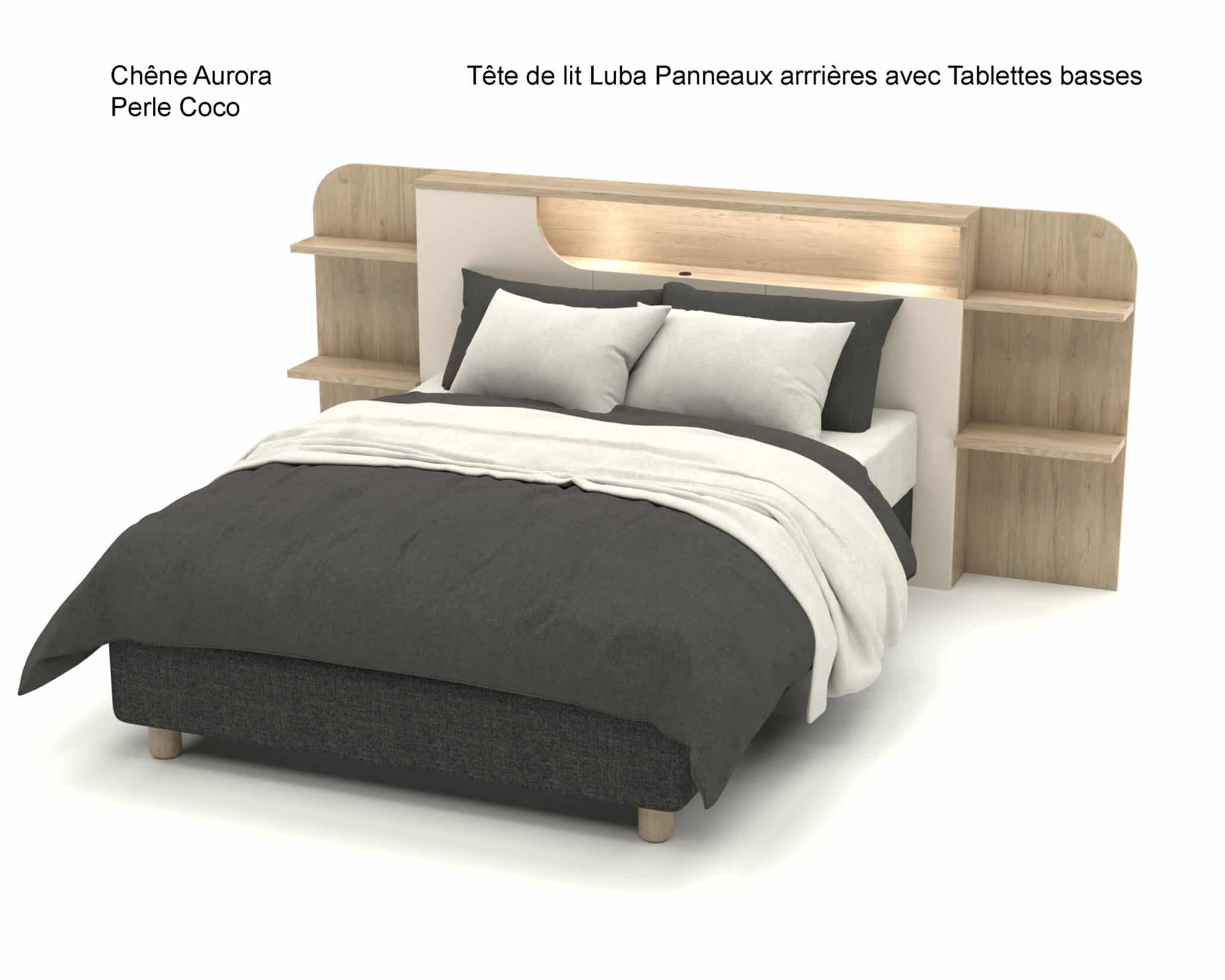 Tête de lit Luba avec Panneaux arrières et Tablettes Basses :