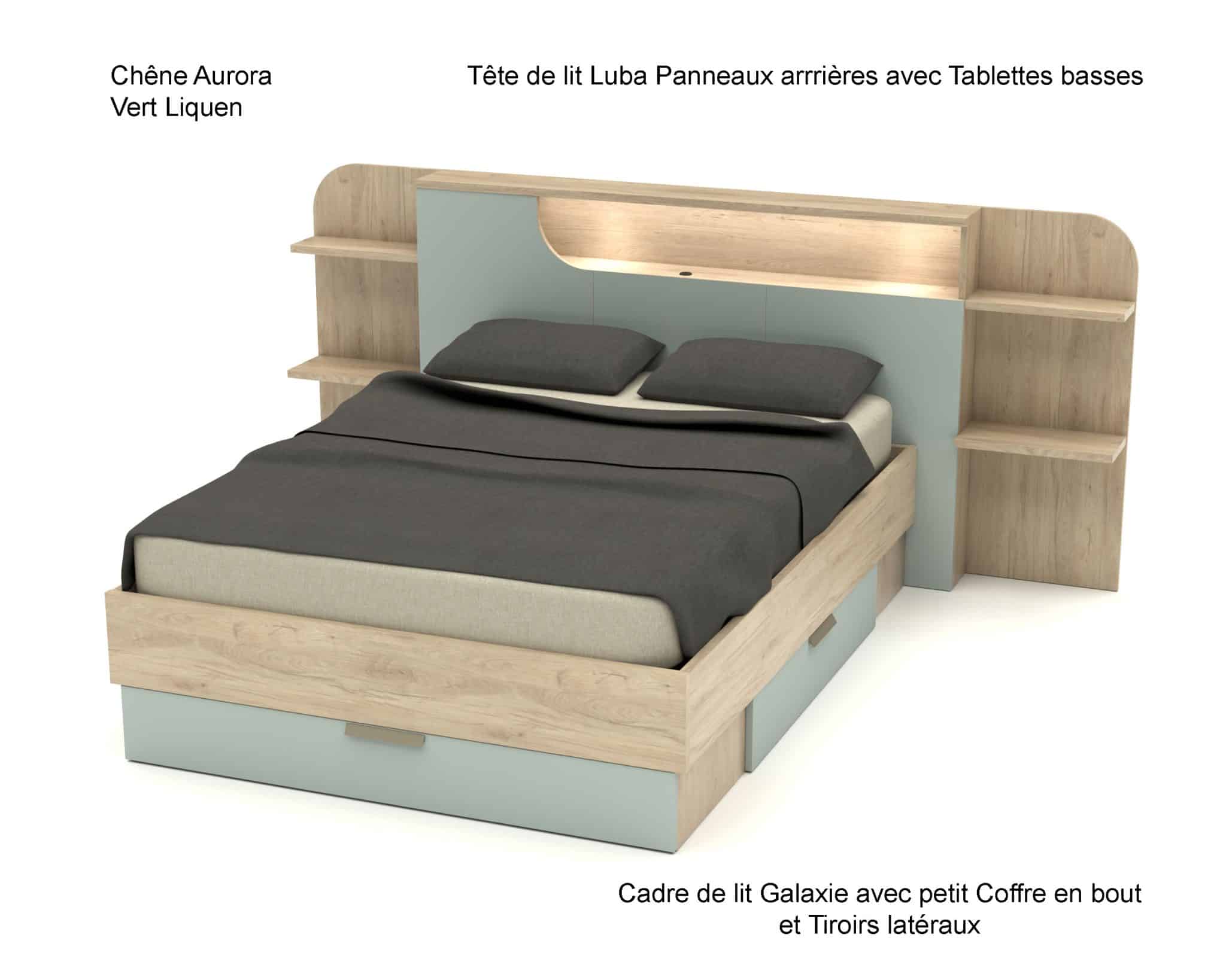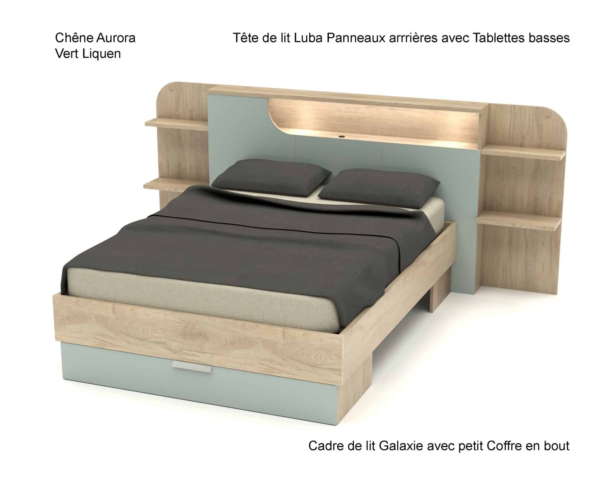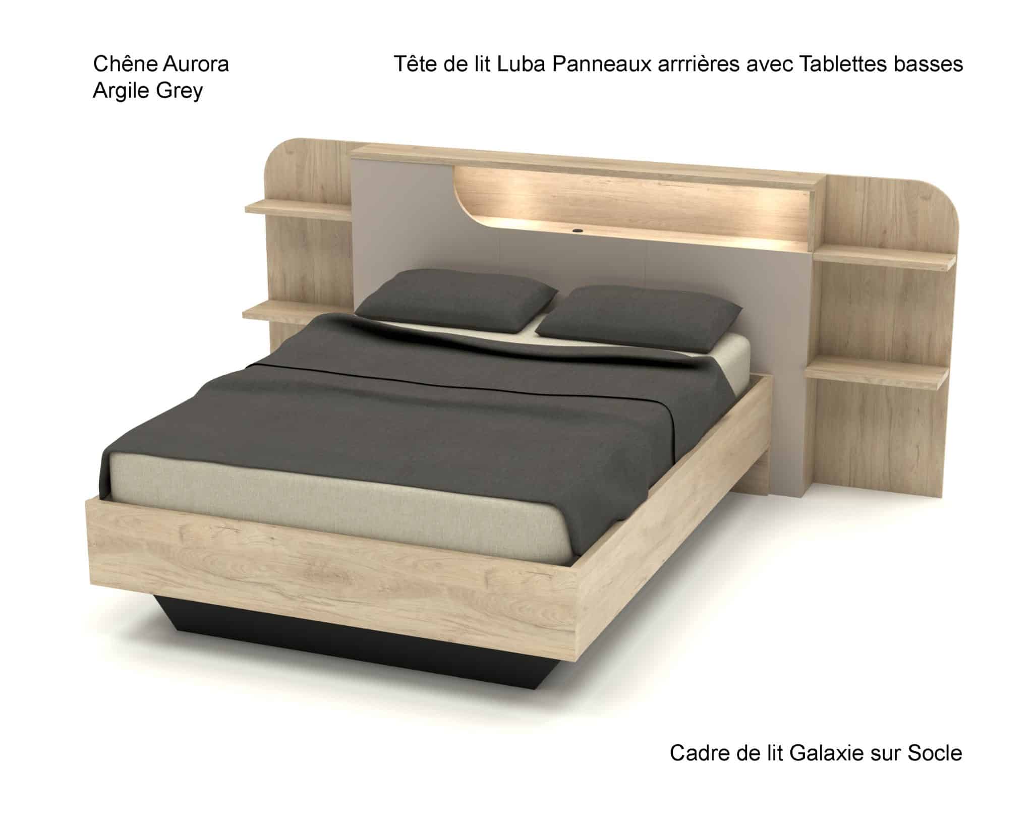 Tête de lit Luba avec Panneaux arrières et Tablettes Basses :