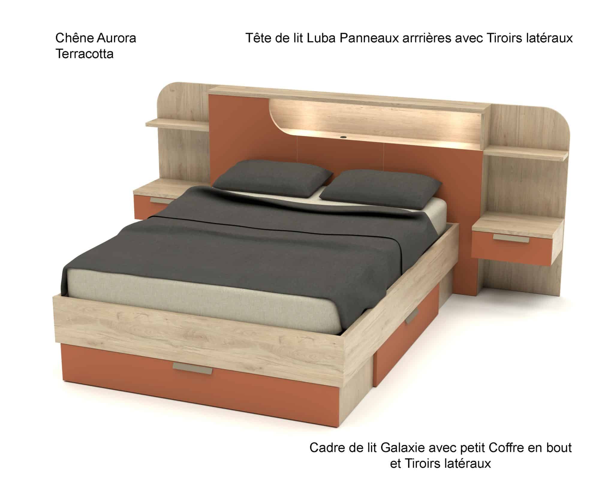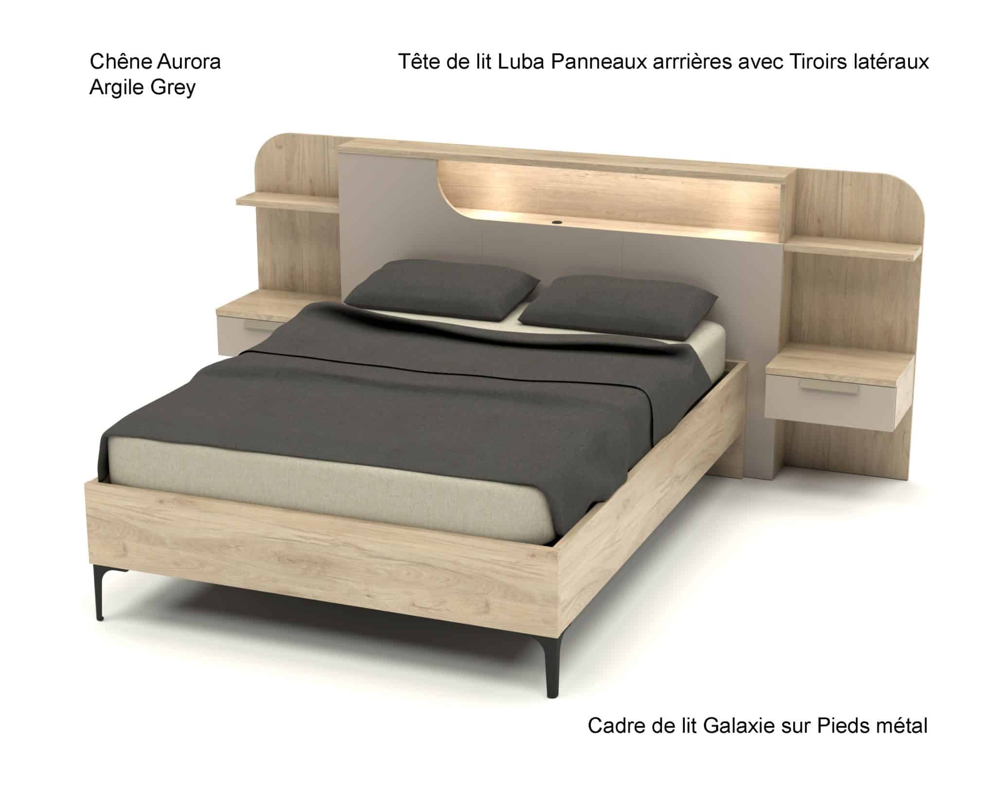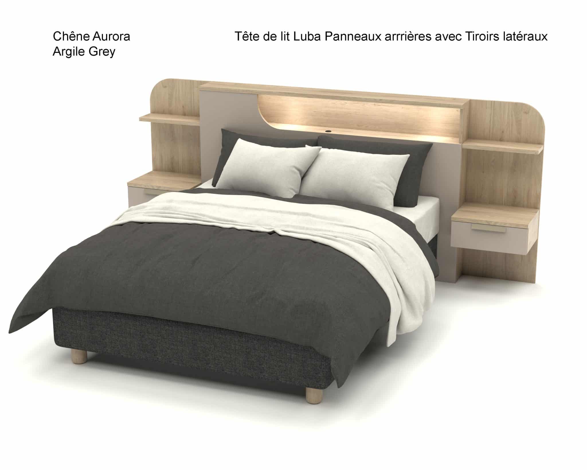 Tête de lit Luba avec Panneaux arrières et Tiroirs latéraux :