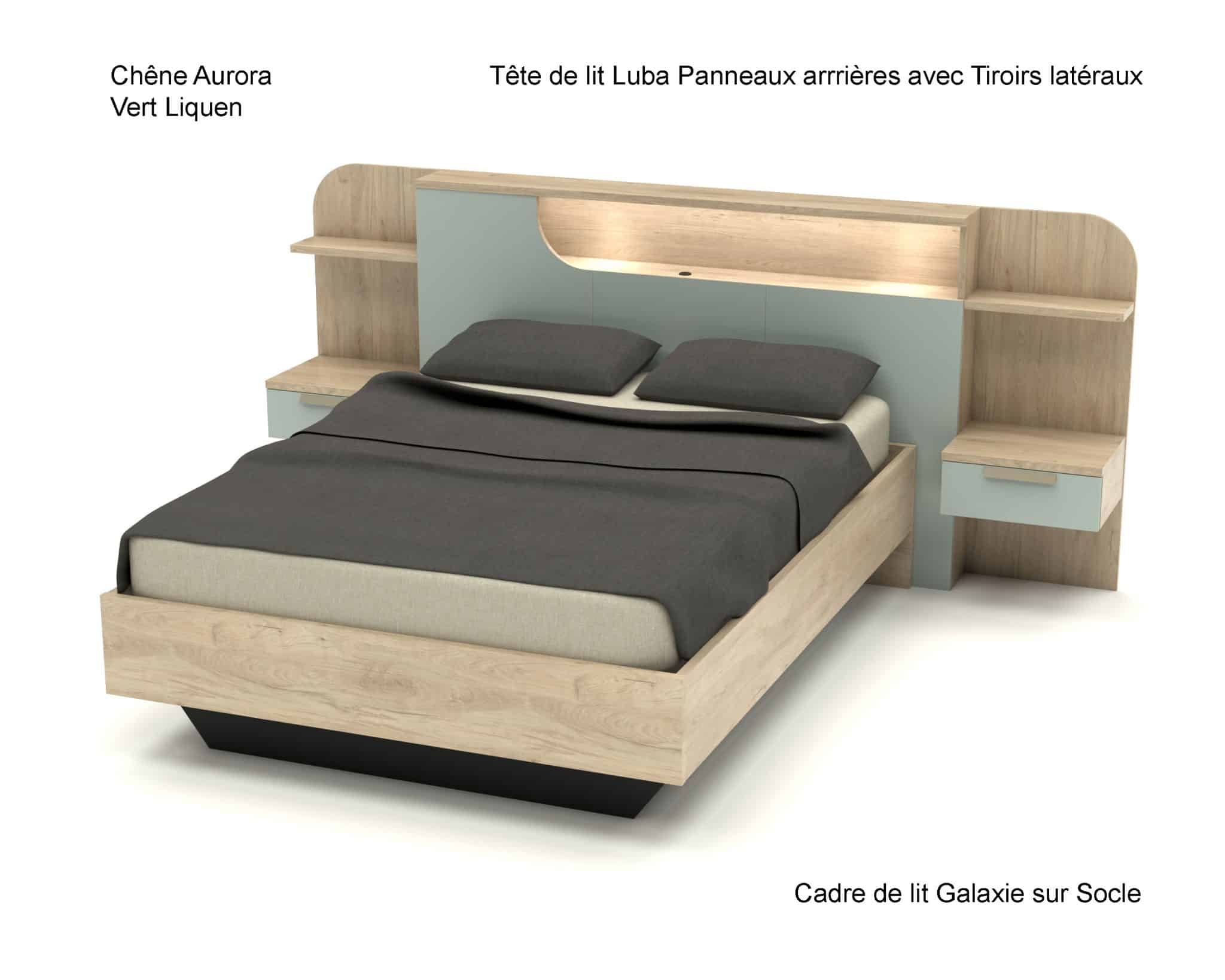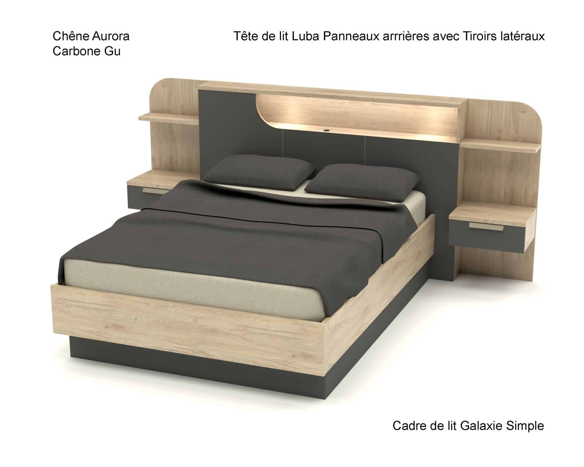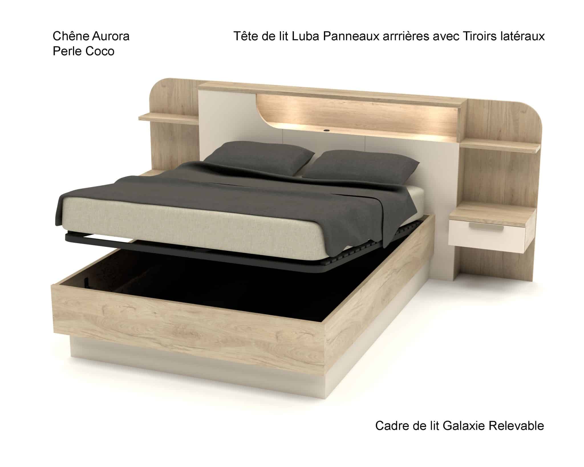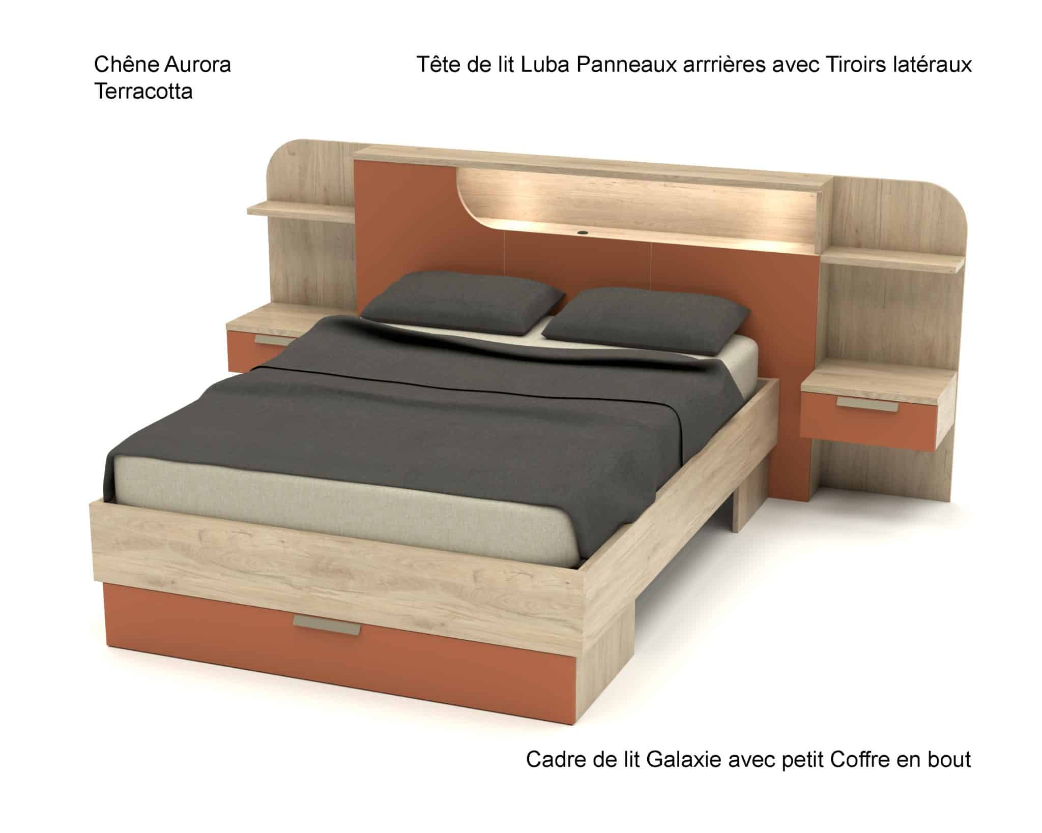 Tête de lit Luba avec Panneaux arrières et Tiroirs latéraux :