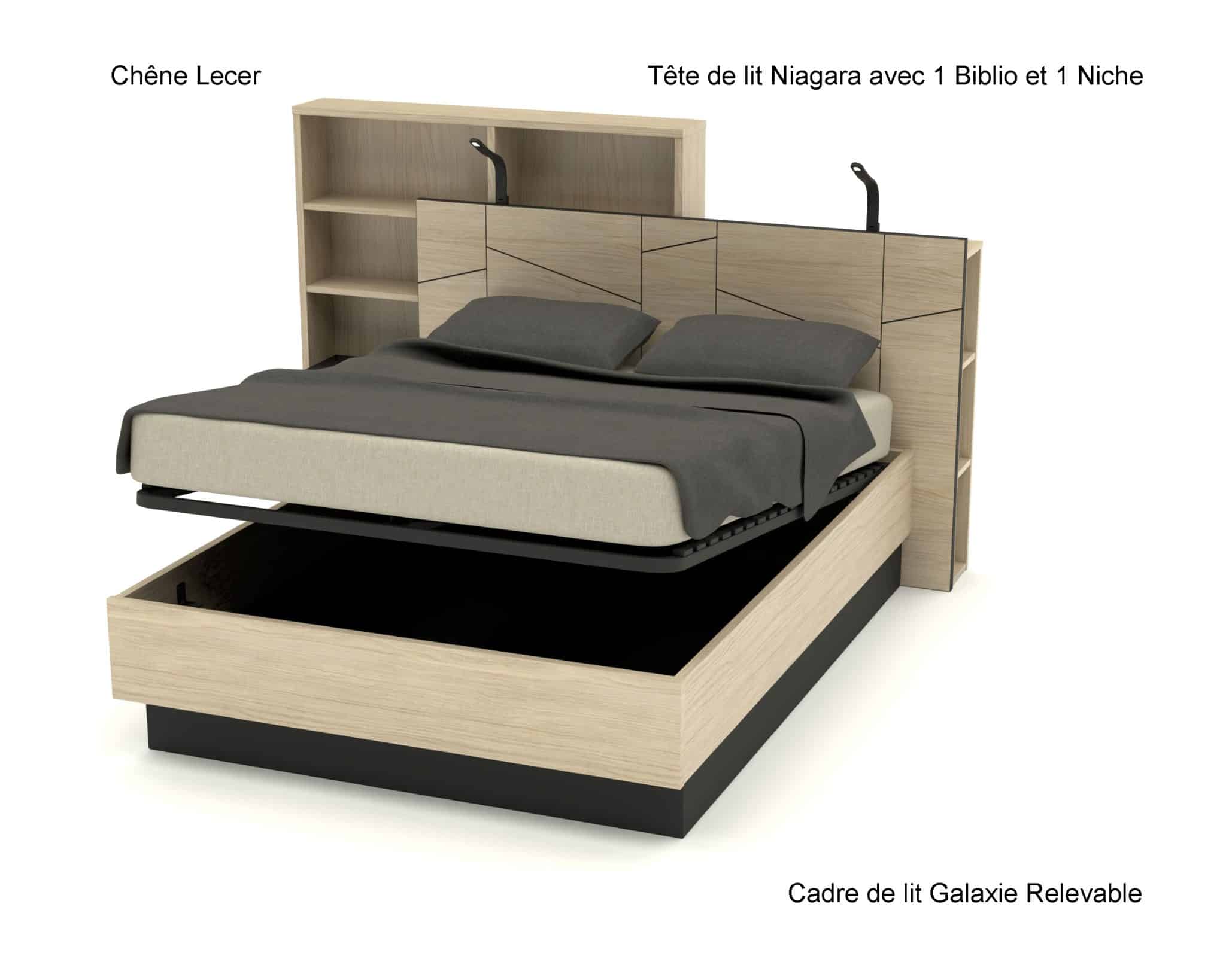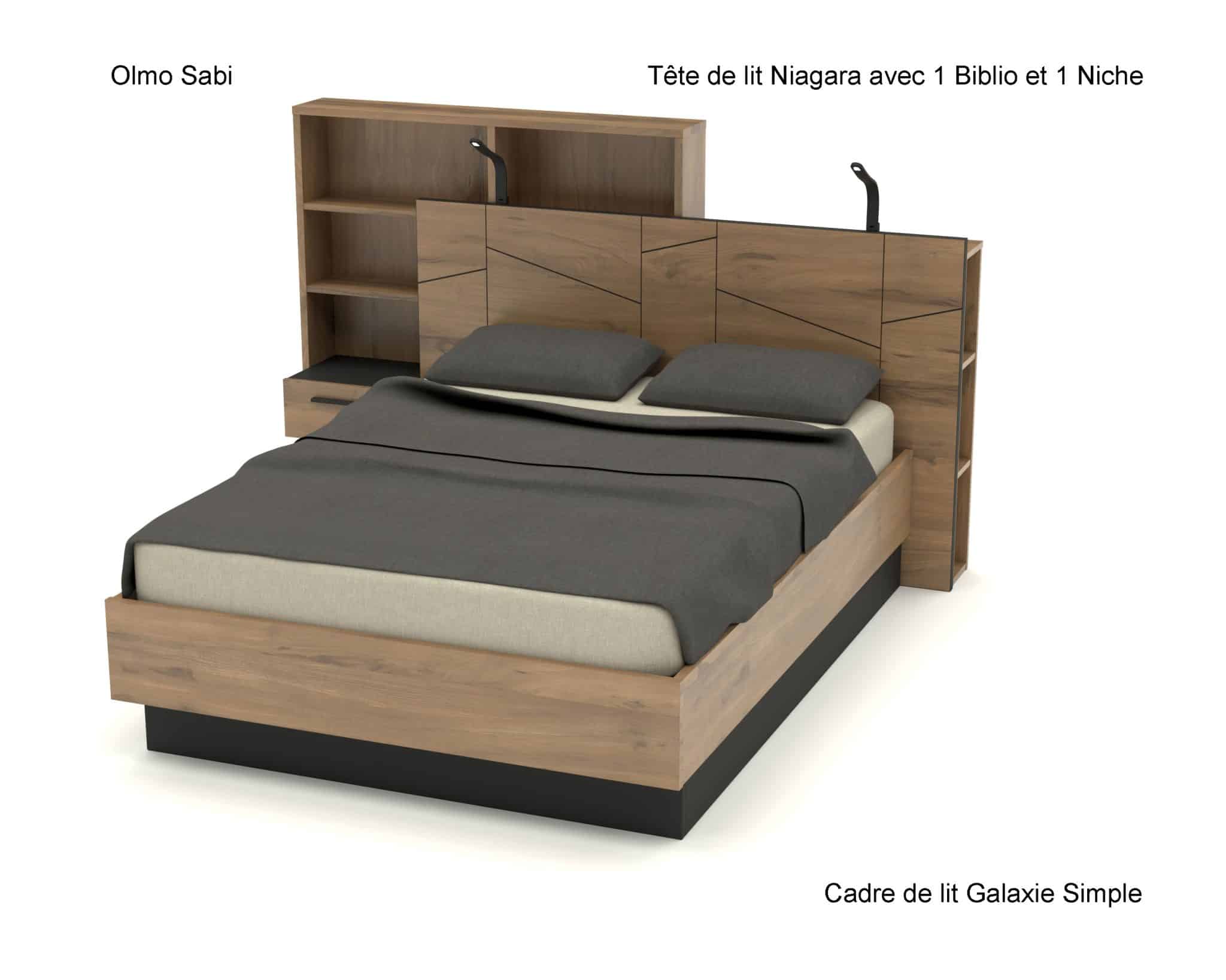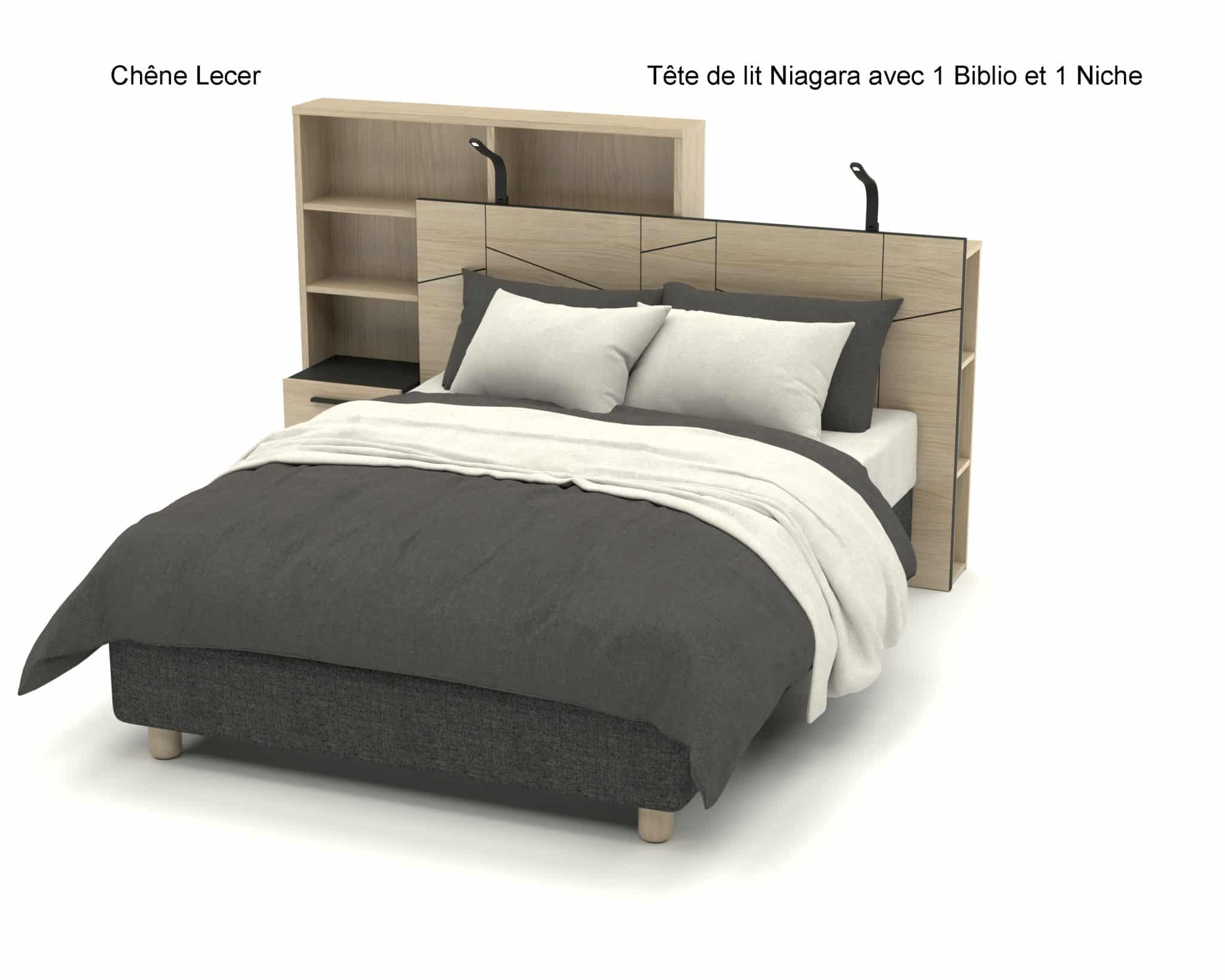 Tête de lit Niagara avec 1 bibliothèque et 1 niche latérale :