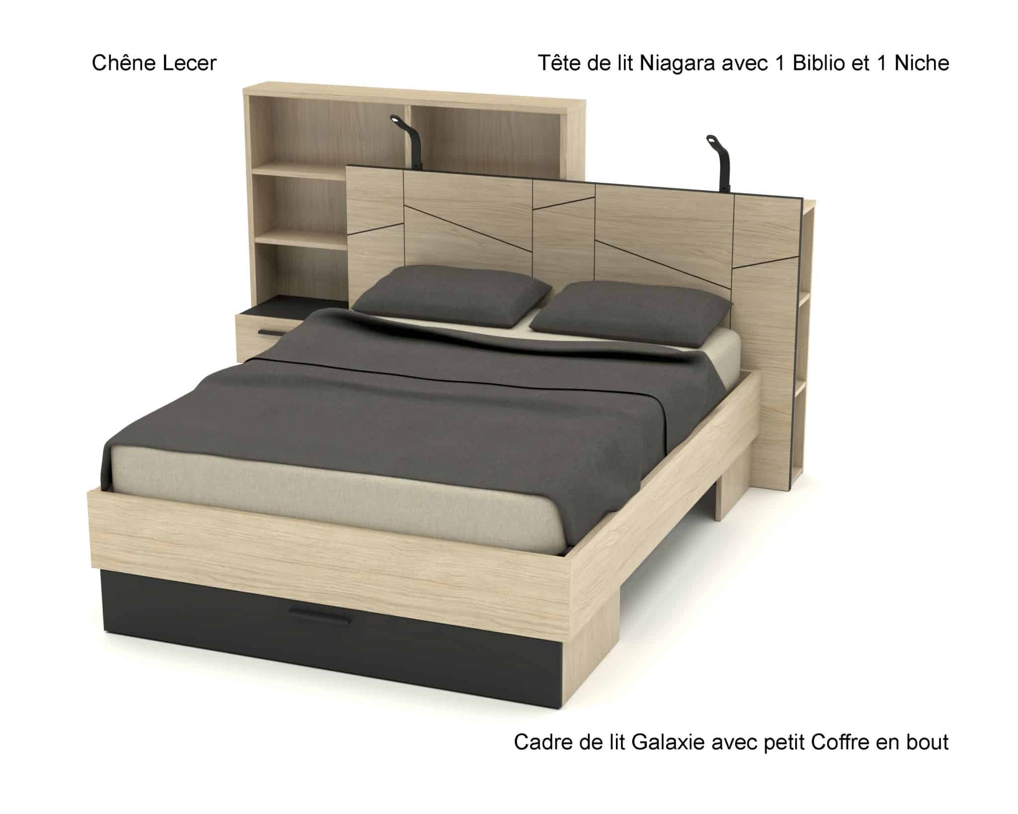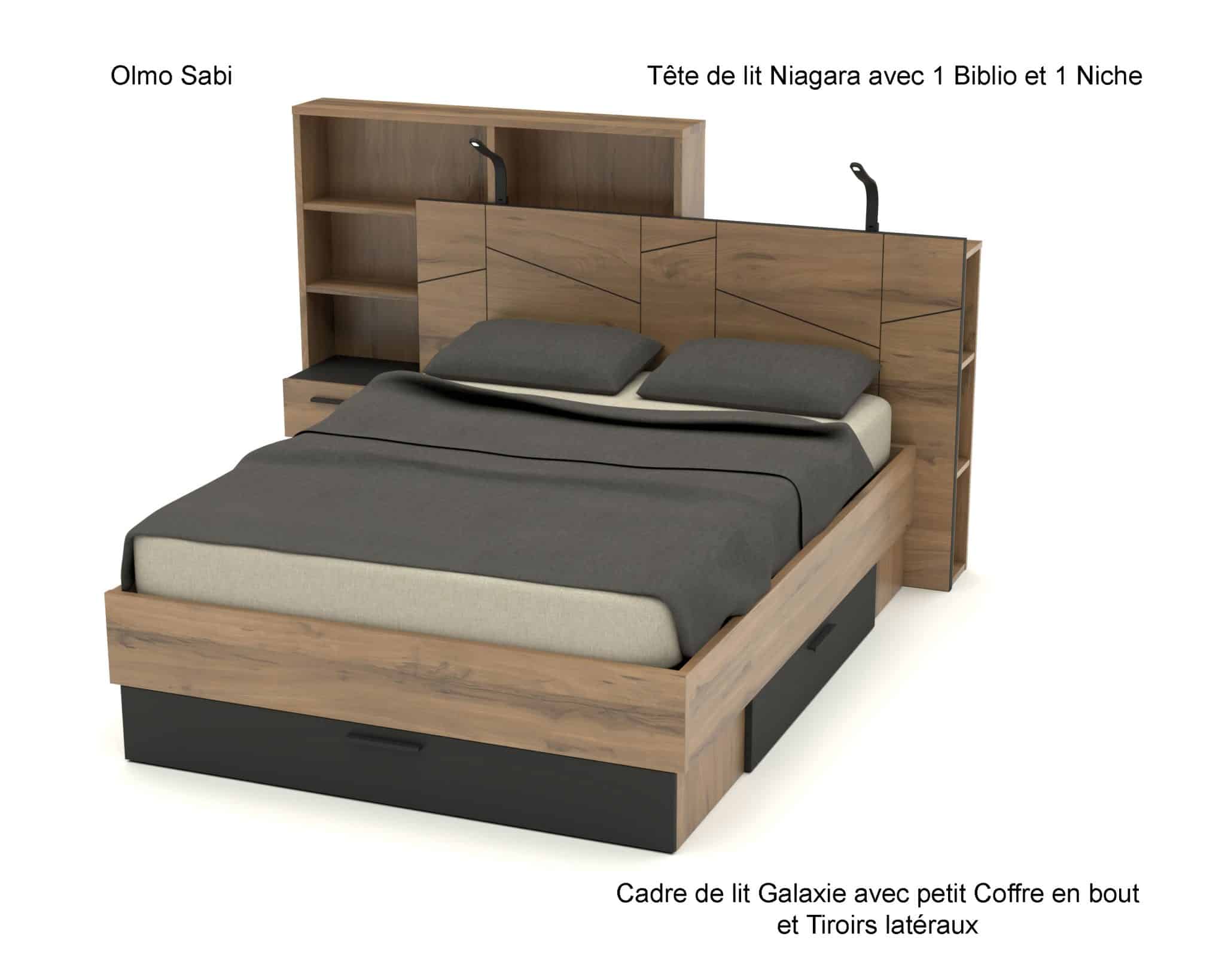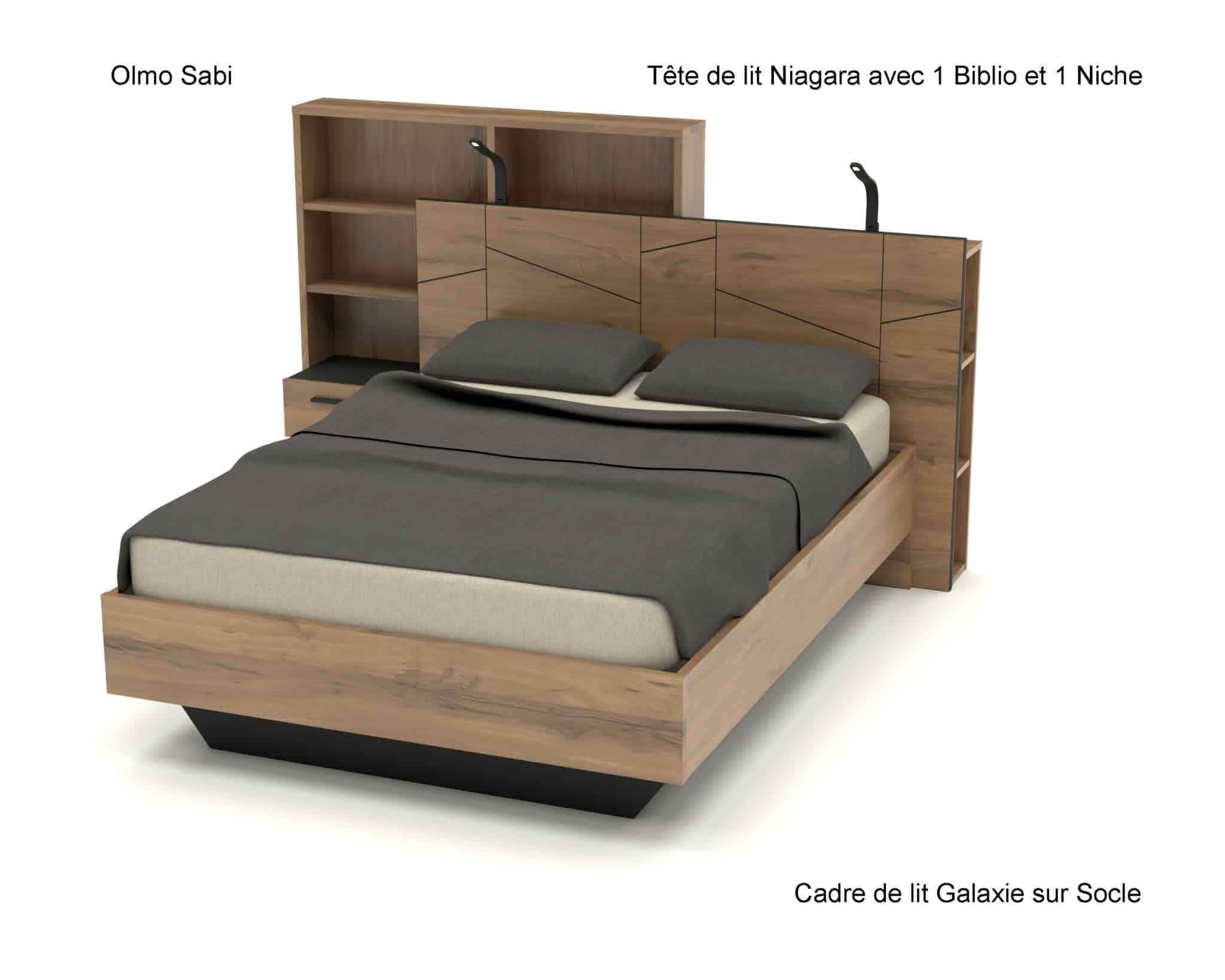 Tête de lit Niagara avec 1 bibliothèque et 1 niche latérale :